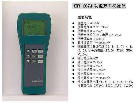 功能:0-10V,4-20mA,10种热电偶,4种热电阻的稳定标准信号输出与测量,仪器自带24VDC稳定输出.