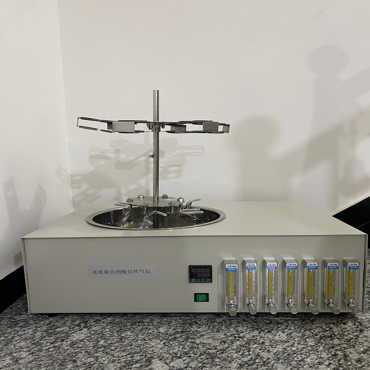 针对污水、工业废水等水样中的硫化物检测中繁琐、复杂的酸化吹气的前处理过程水质硫化物酸化吹气仪,该款仪器是按照国标《GB/T16489-1996水质硫化物的测定--亚甲基蓝分光光度法》以及《HJ/T60-2000水质硫化物的测定 碘量法》的要求设计的,完全可以满足实验前处理要求,该仪器具有操作简单、样品均一性高、大大降低有害气体的损伤、处理样品量大等特点。