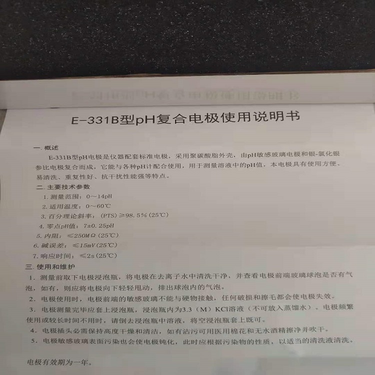 E-331B电极采用聚碳酸脂外壳、聚四氟环液络设计,它能与各种pH计配合使用,用于测量溶液中的pH值,本电有使用方便、易清洗、重复性好、抗干扰性能强等特点。