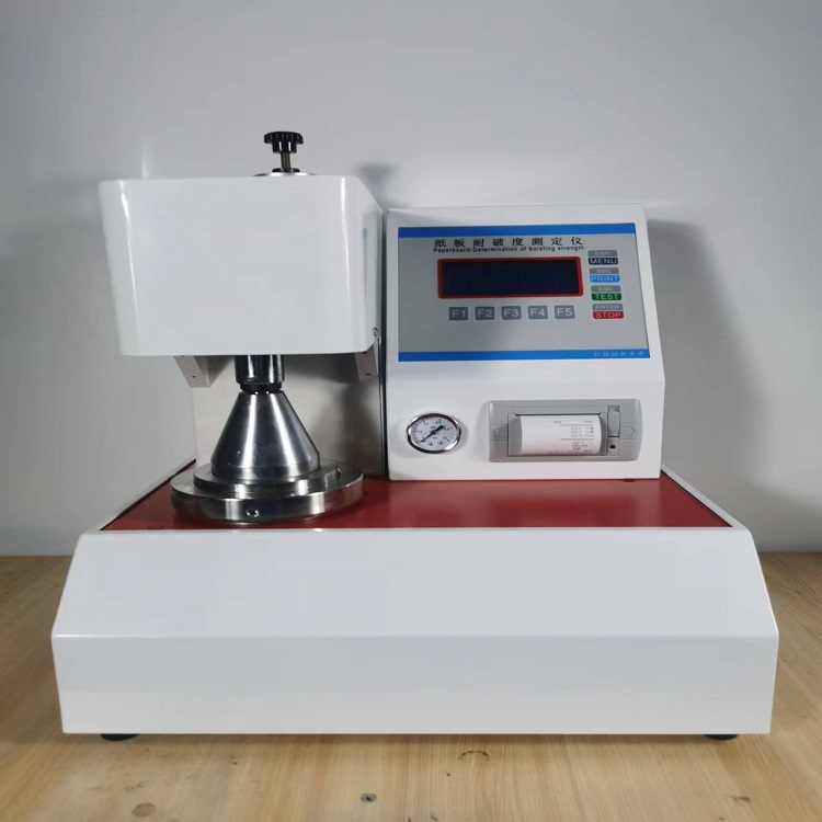 纸张耐破度仪是测试纸箱纸板的破裂强度值,采用数字显示压力,在试料破裂时,自动保留最大破裂强度值,同时可趋势打印检测结果。破裂强度试验机的指示方式为数位式,容量为0-100kg/cm2。破裂强度试验机广泛的适用于包装材料,包括一般纸张、瓦楞纸、卫生纸、包装、 纸等等, 及皮革、布类、包装薄膜之上, 可有效的对产品质量进行监测。