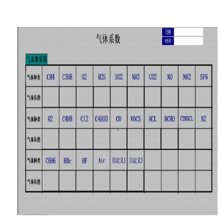 ☆ 气体系数:用户需要根据本手册提供的气体系数表,输入相应的气体系数,便可对